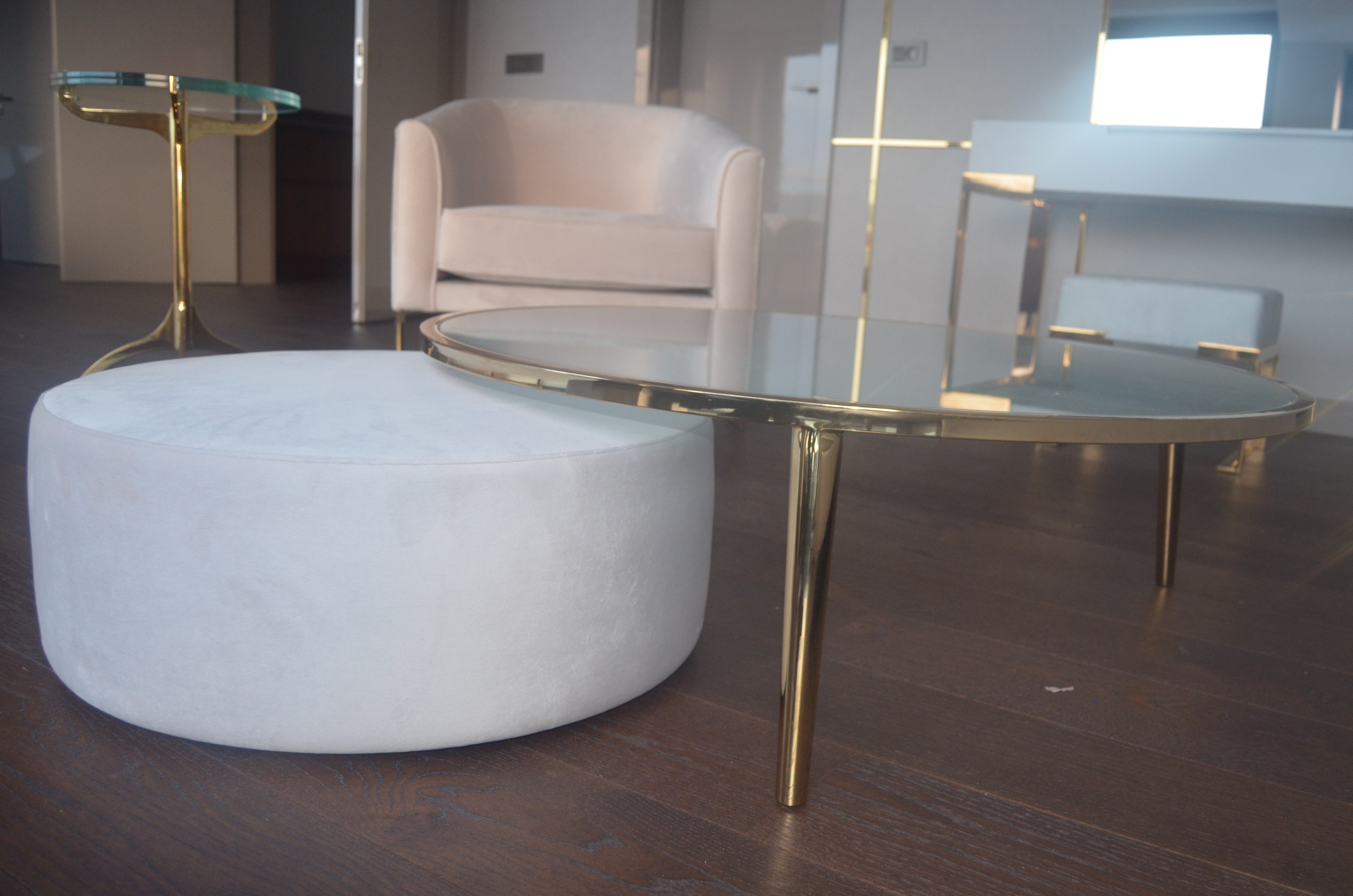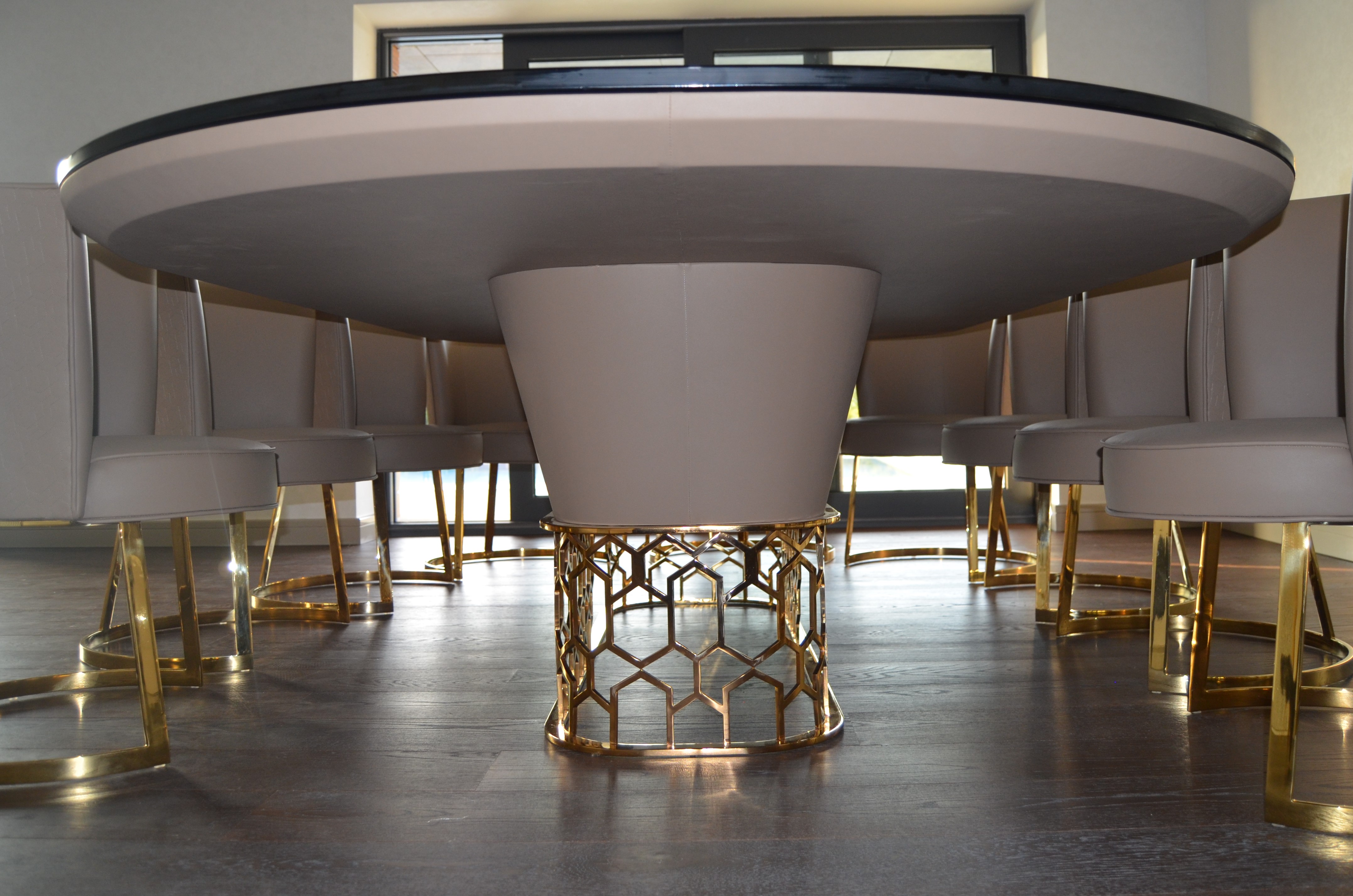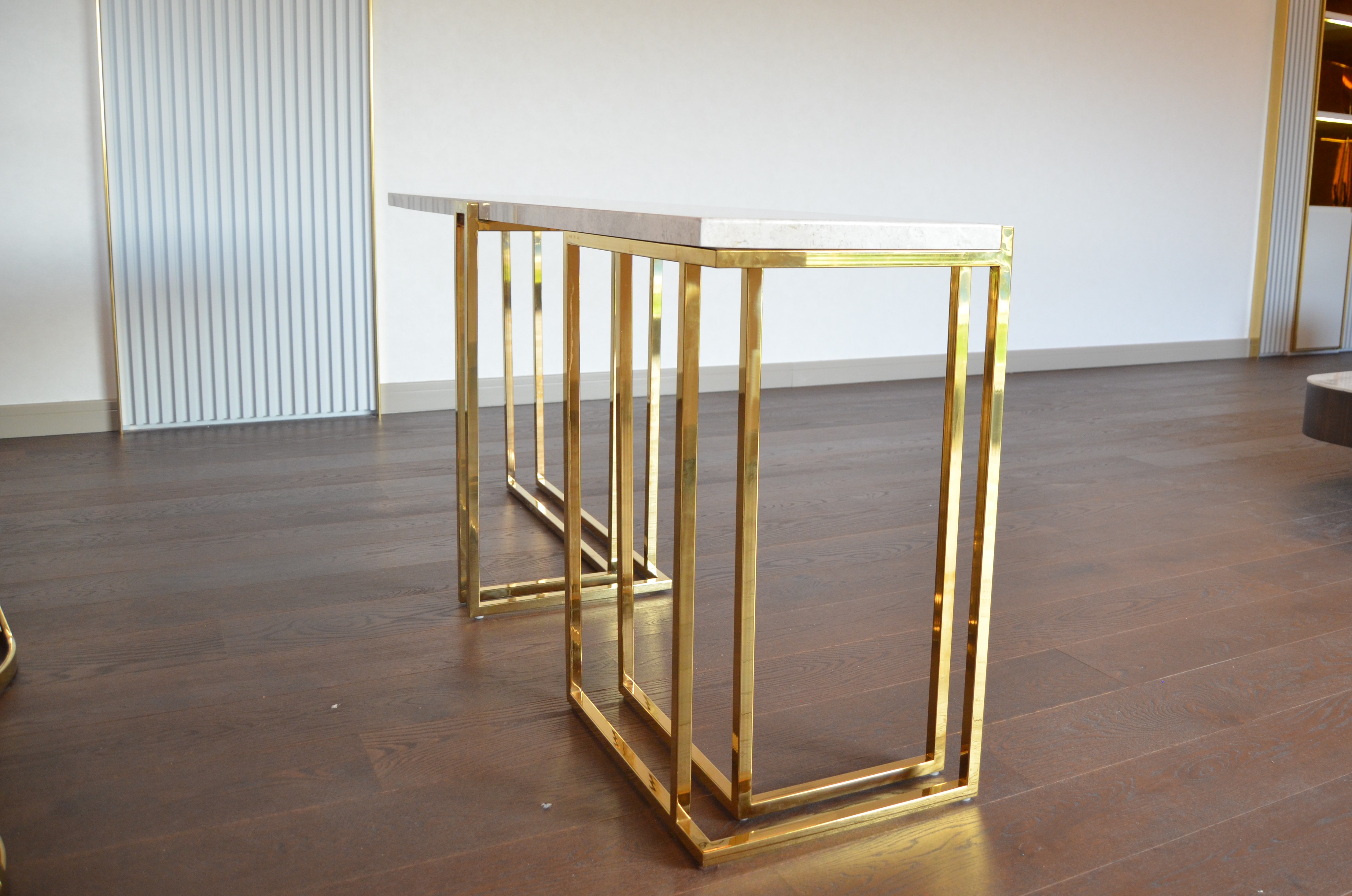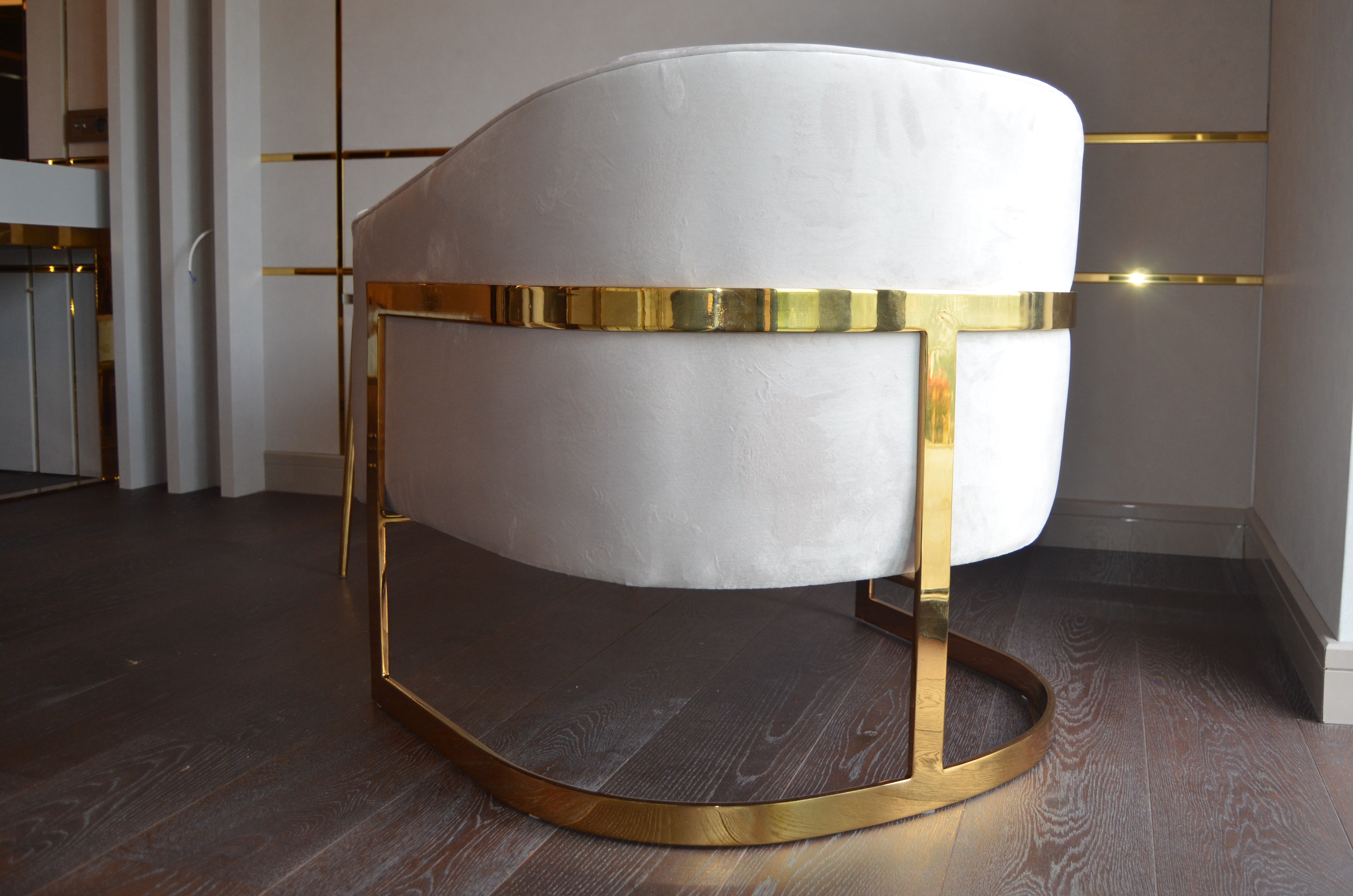 It is a house project completed with metal details combined with furniture and upholstered products, as well as fixed and movable products designed with gold PVD coating on stainless steel.