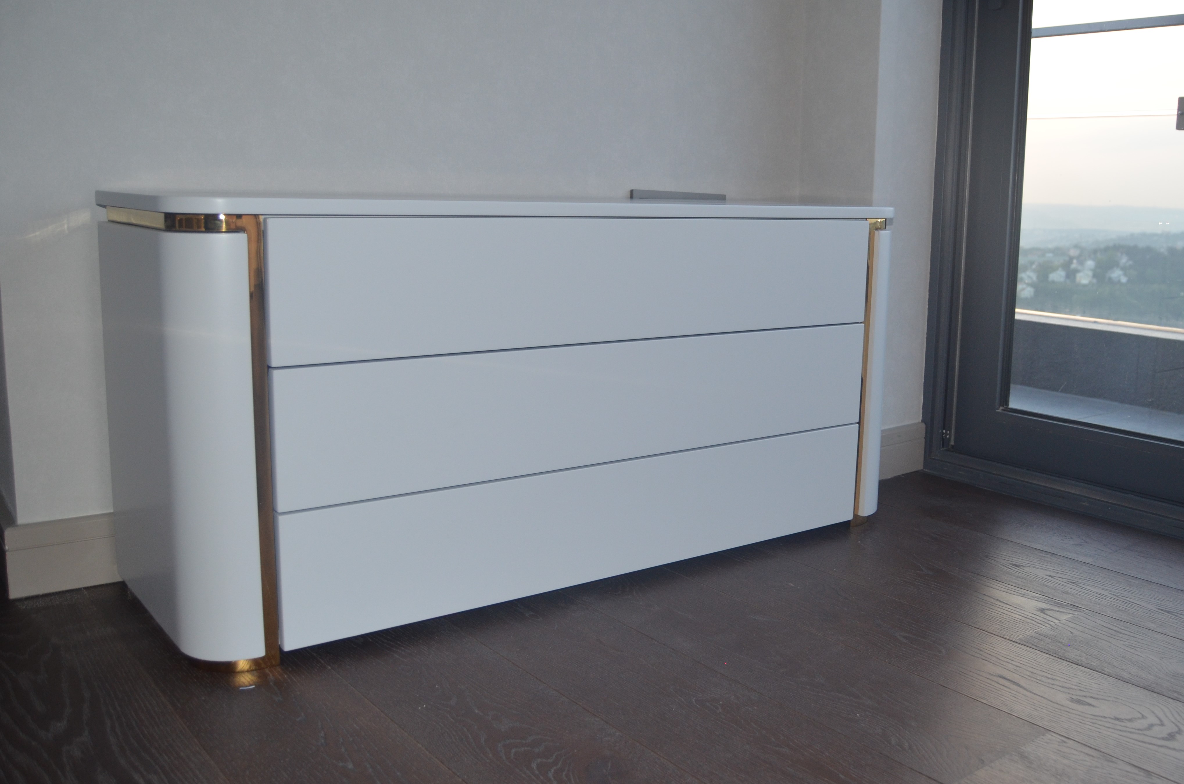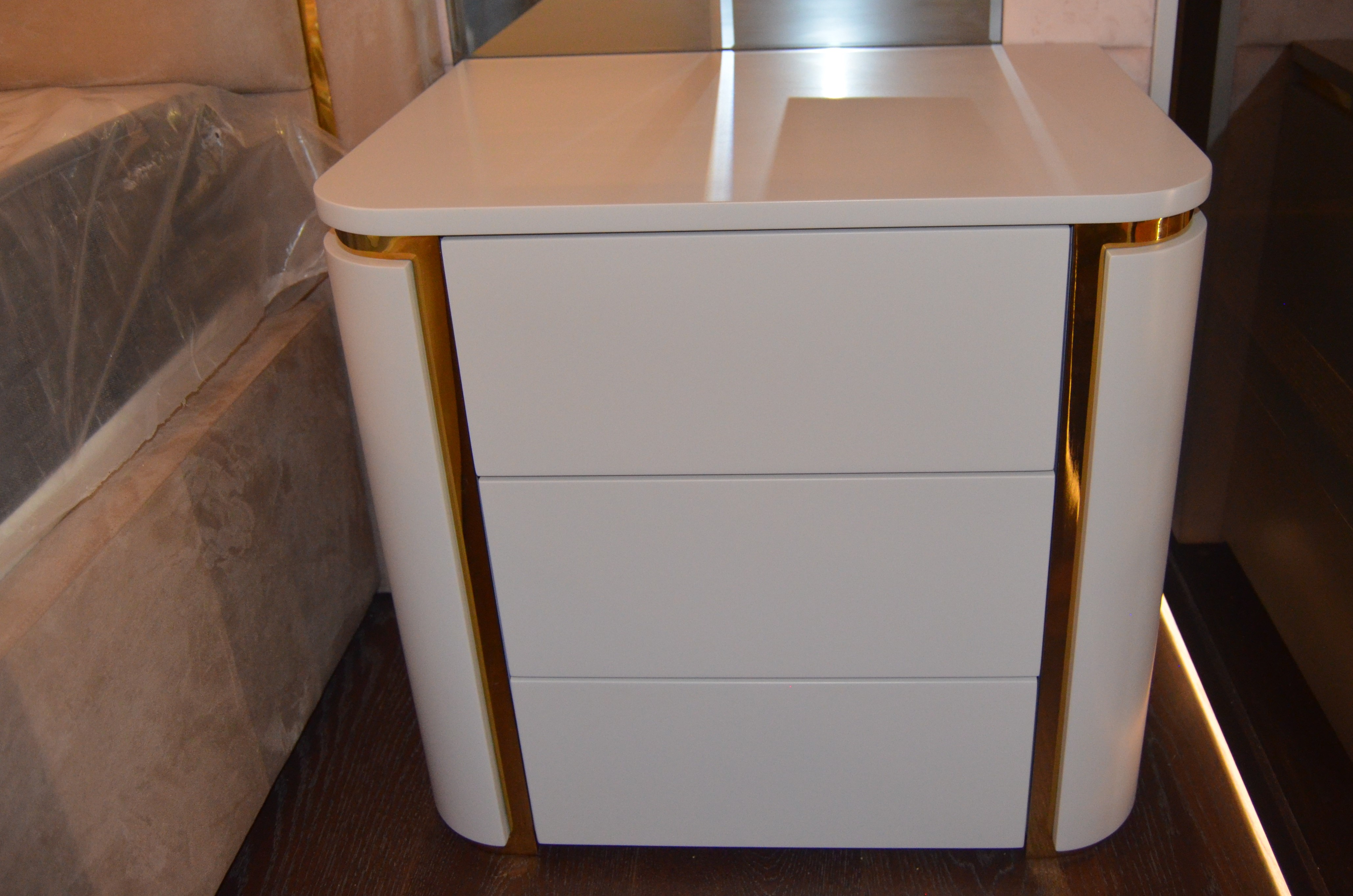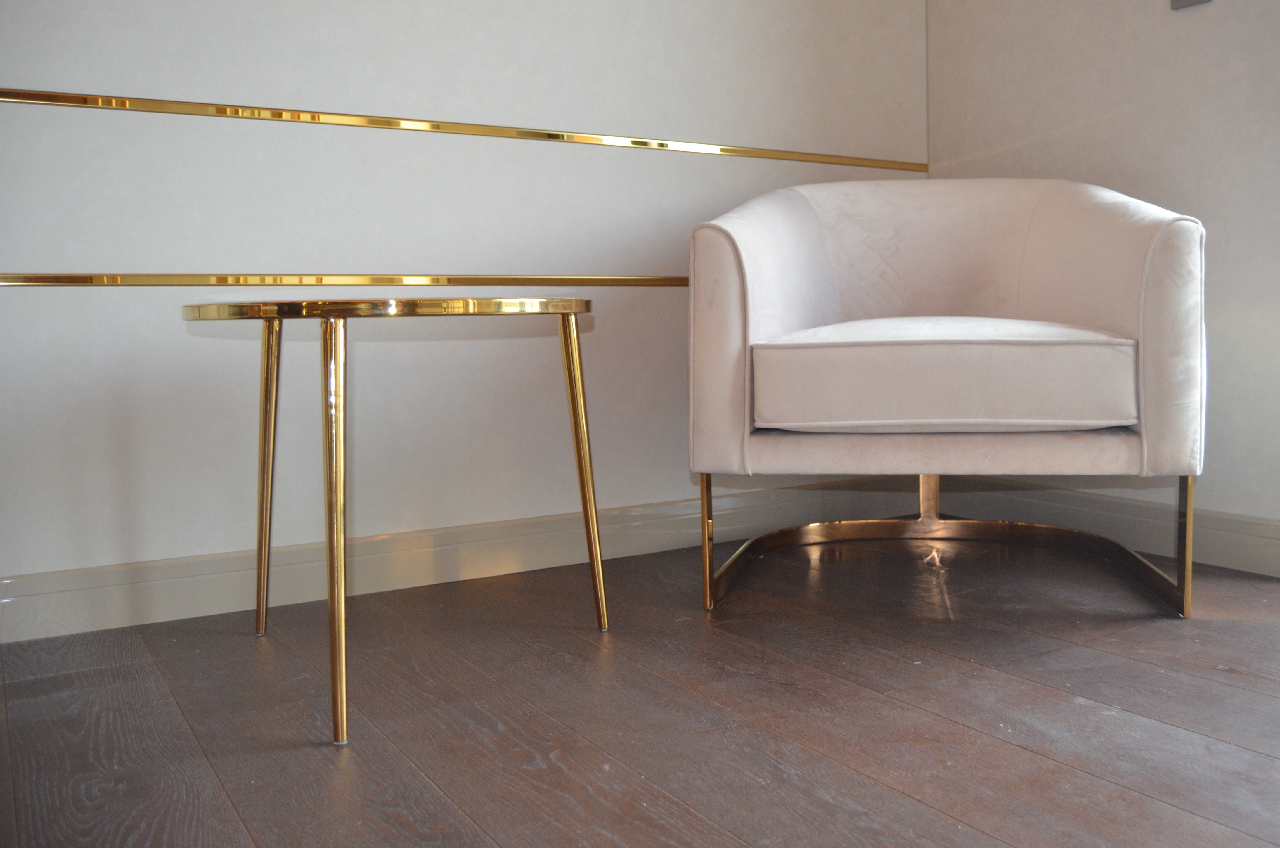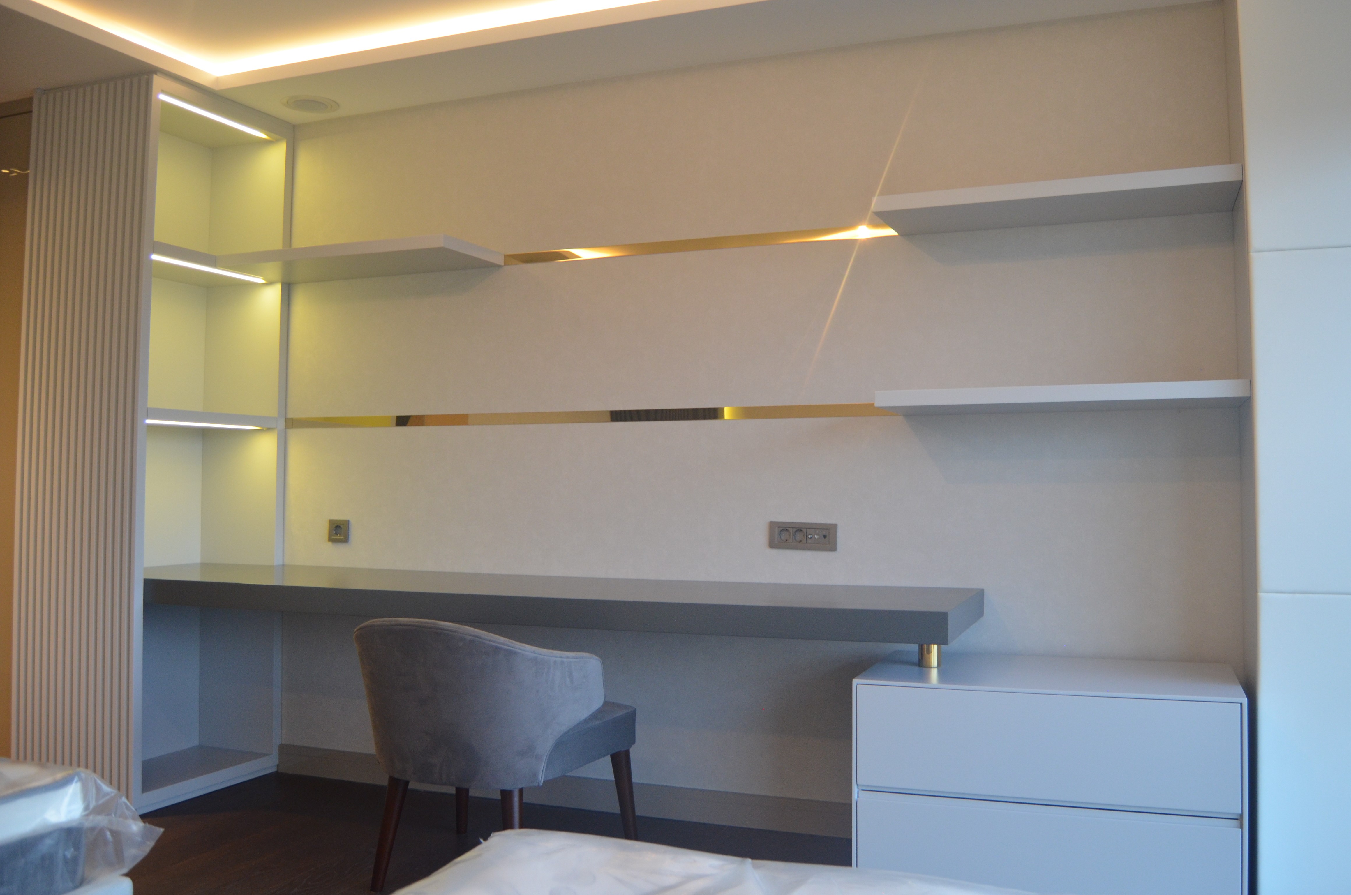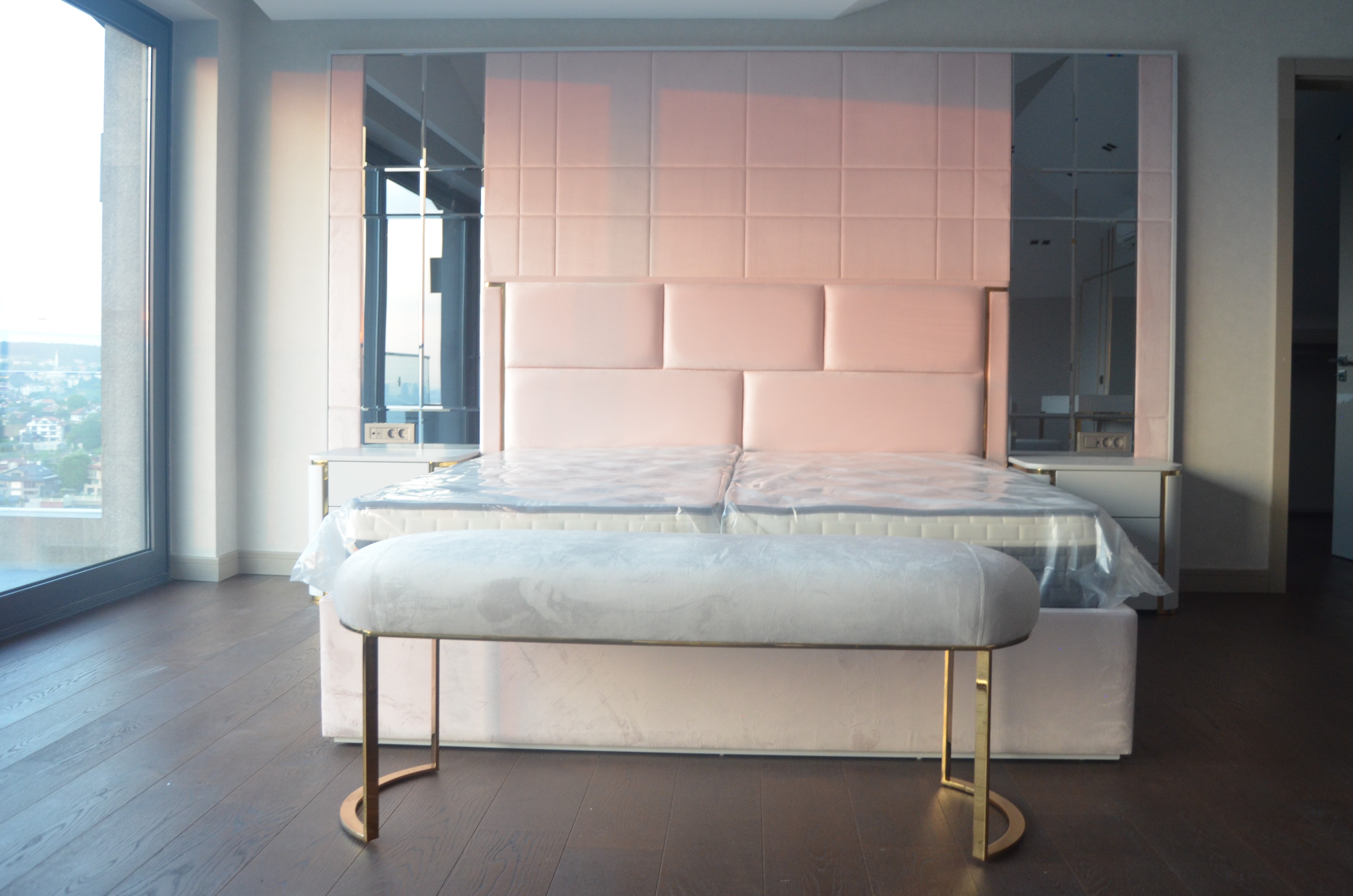 It is a house project completed with metal details combined with furniture and upholstered products, as well as fixed and movable products designed with gold PVD coating on stainless steel.